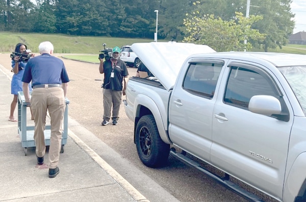Senator David Blount, Representative Ronnie Crudup and Mr. Skinner from Skinner Chevrolet donated 200 clear book bags to the Hinds County School District at Gary Road Intermediate School. Hinds County School Superintendent Dr. Delesicia Martin; Assistant Superintendents Dr. Robert Sanders and Mrs. Michelle Ray; and Community Relations Specialist Pastor Tonie Crisler greeted them with gratitude for this wonderful and needed donation.