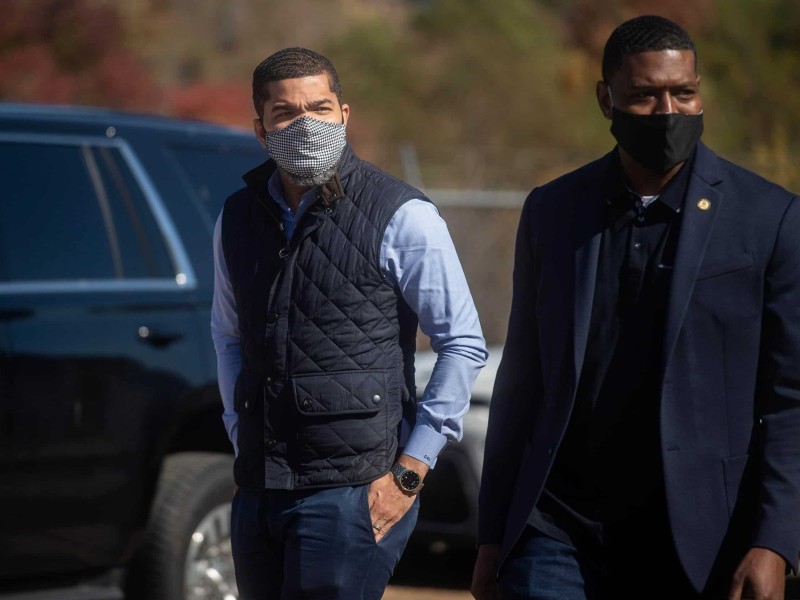 Charles Williams, Jr., Jackson’s city engineer, speaks to media during United States Environmental Protection Agency Administrator Michael S. Regan’s tour stop at the O.B. Curtis Water Plant in Ridgeland, Miss., Monday, Nov. 15, 2021.