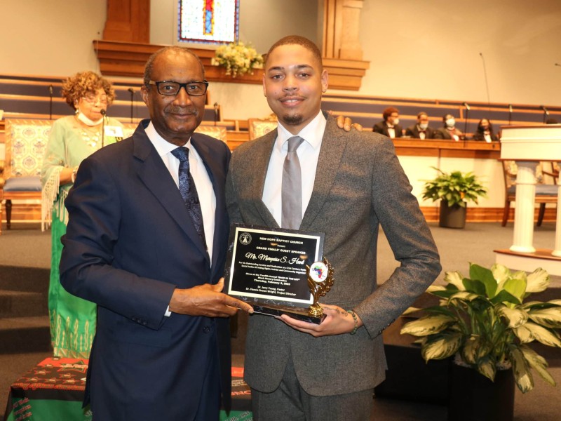 The program concluded with a small awards ceremony. Both the guest speaker, Marquise Hunt, and the musical guest, Harry Watson and The Jubilee Singers, were presented with awards for their prolific showing during the program. The Obadiah and Elizabeth Myles Humanitarian Award was presented to Derek Starling Jr. who is a Junior honor roll student at St. Joseph Catholic School and is a member of the school’s varsity basketball and tennis teams. He is an active member of New Hope, serving as a junior usher and greeter. He was presented the award by the Myles family.